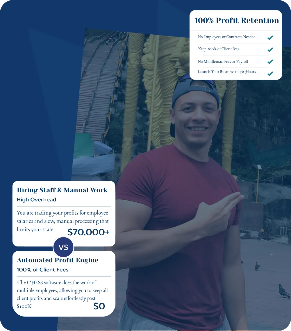 Before the Masterclass, I was manually struggling. This system made me $8,000 in my first month without running expensive ads. The CHESS software completely changed the business model—it’s truly automated and the profits are mine to keep.